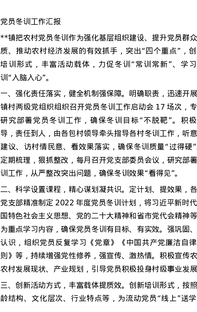党员冬训工作汇报