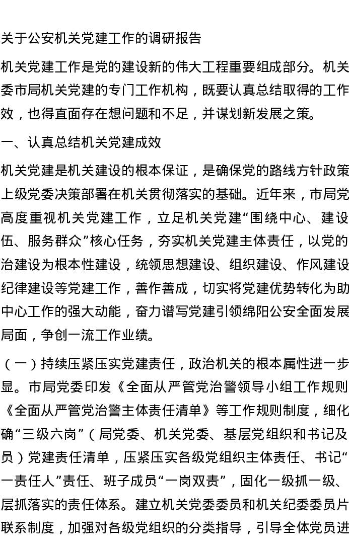 关于公安机关党建工作的调研报告