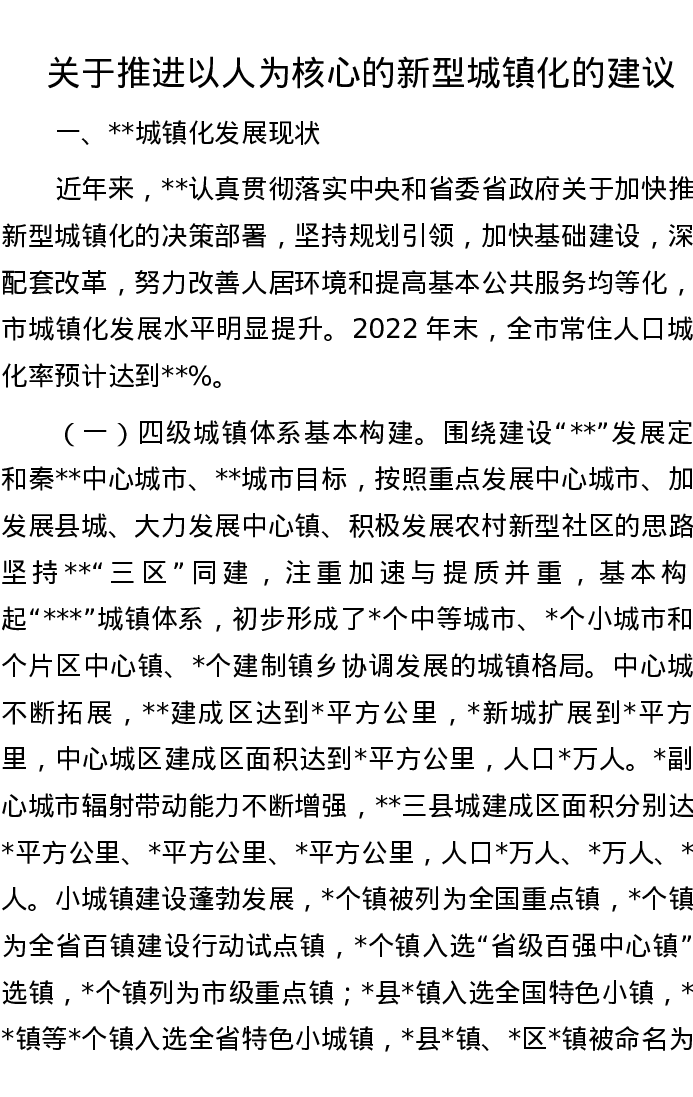 关于推进以人为核心的新型城镇化的建议