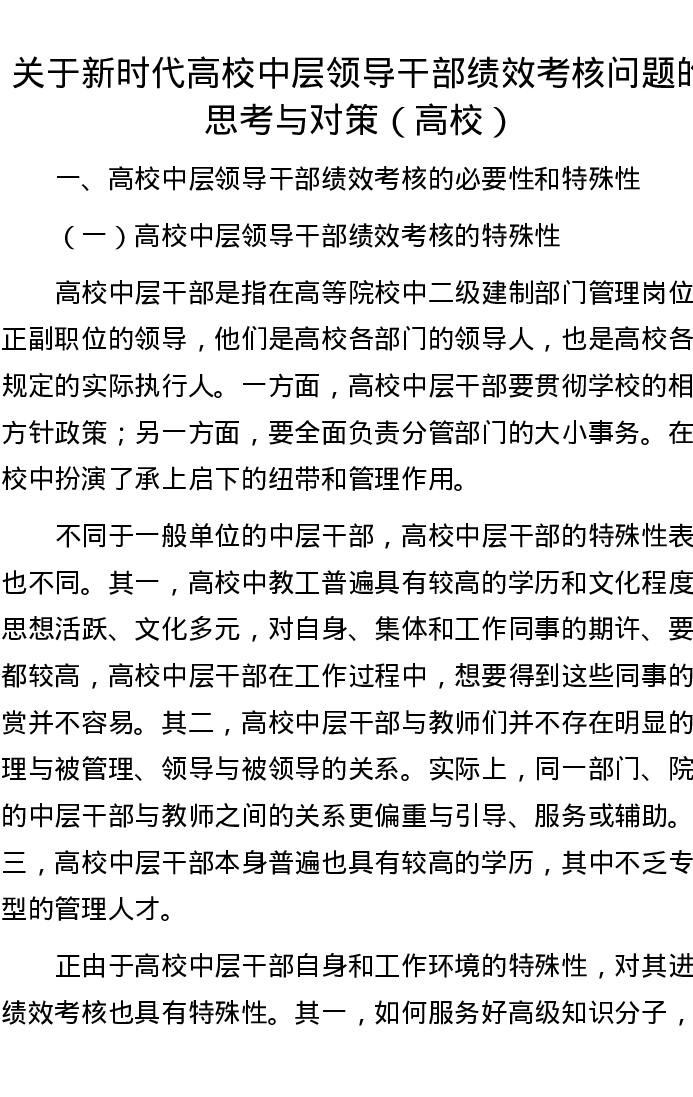 关于新时代高校中层领导干部绩效考核问题的思考与对策(高校)