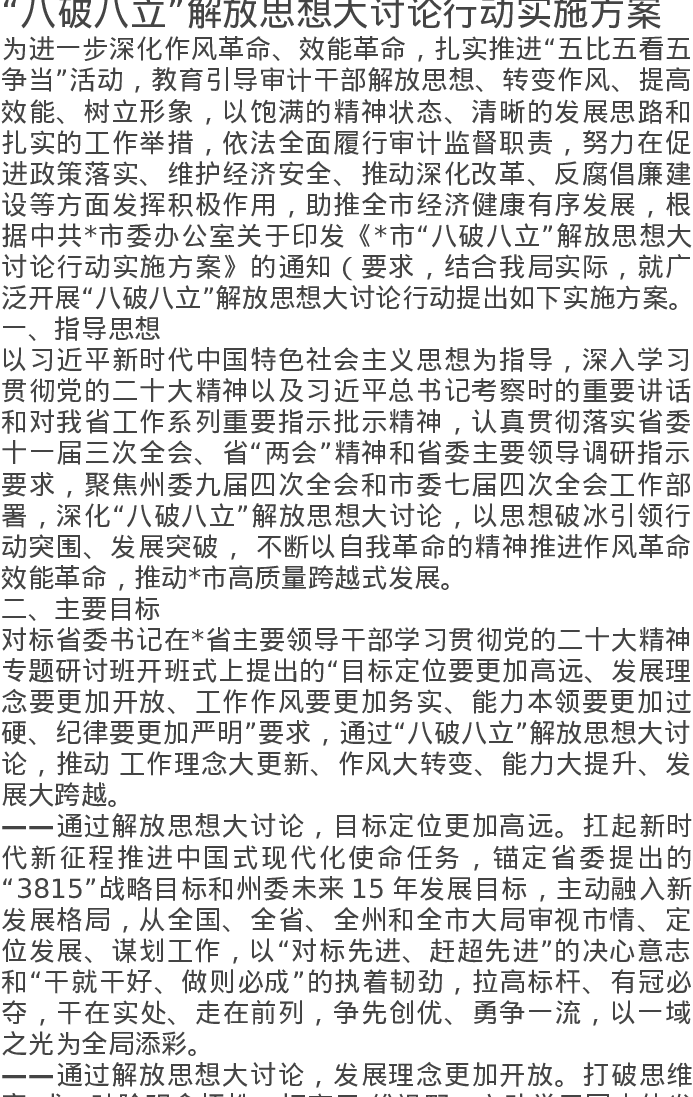 “八破八立”解放思想大讨论行动实施方案