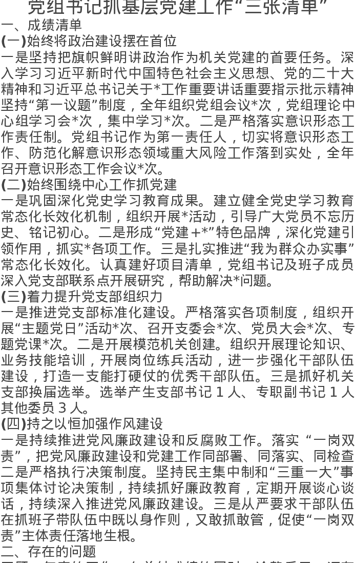 党组书记抓基层党建工作“三张清单”