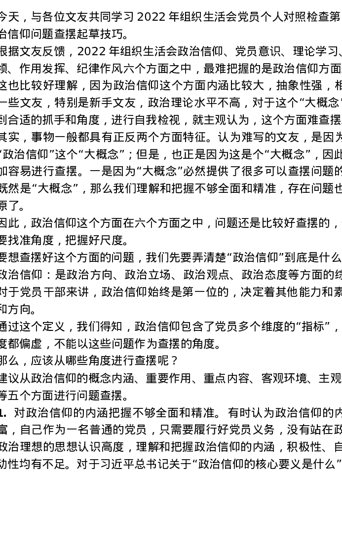 2022(2023)年组织生活会“政治信仰”方面问题起草指南、实例和素材81条