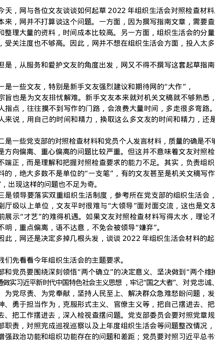2022(2023)年组织生活会对照检查材料起草指南综合