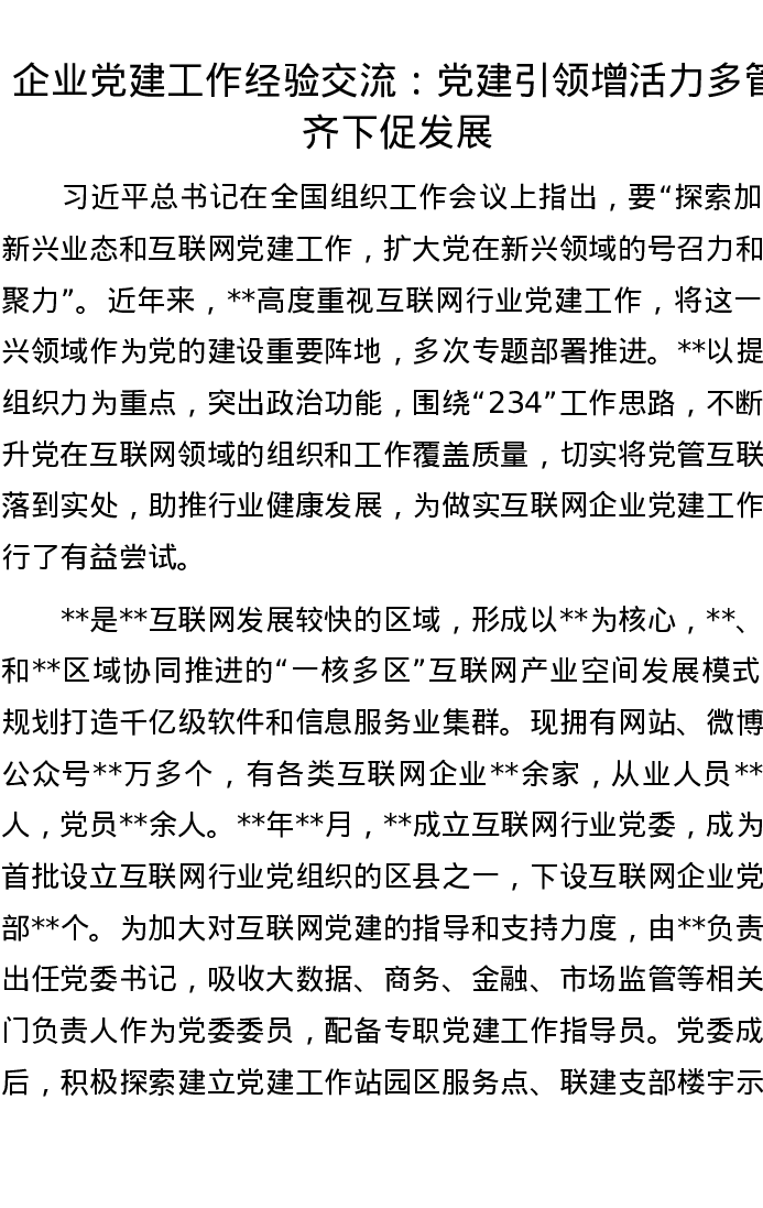 企业党建工作经验交流:党建引领增活力 多管齐下促发展