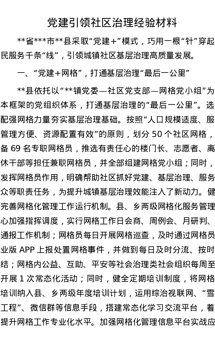 党建引领社区治理经验材料