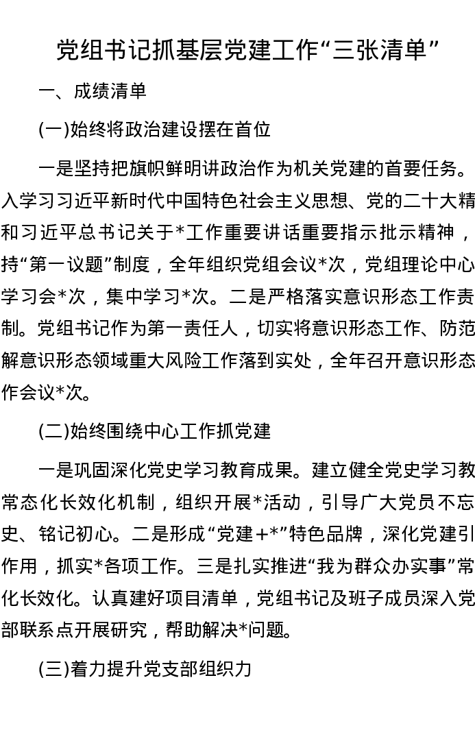 党组书记抓基层党建工作“三张清单”