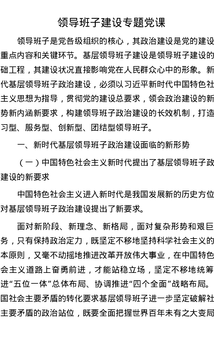 领导班子建设专题党课