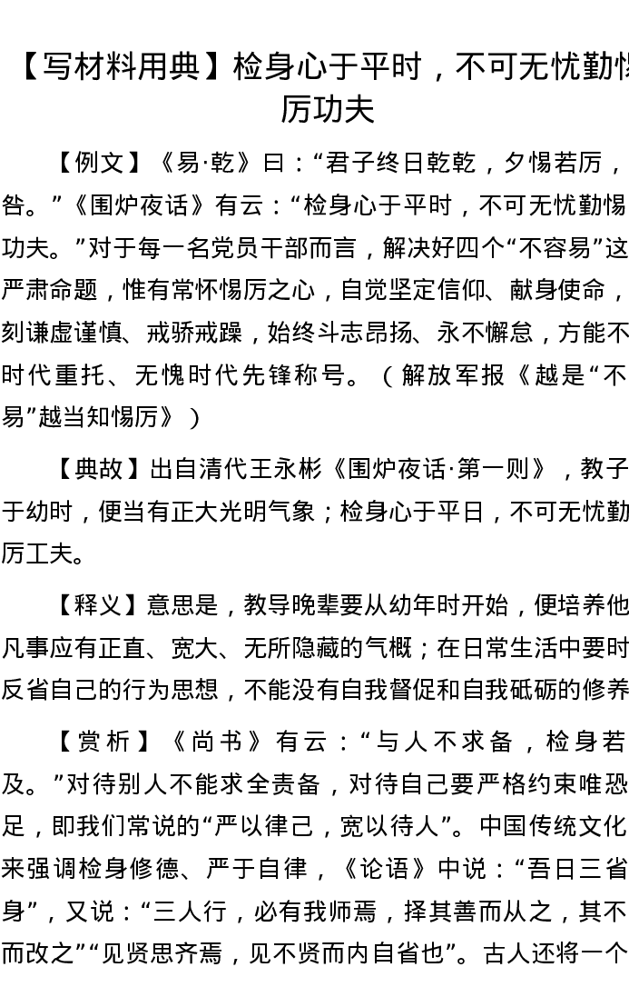 【写材料用典】检身心于平时,不可无忧勤惕厉功夫