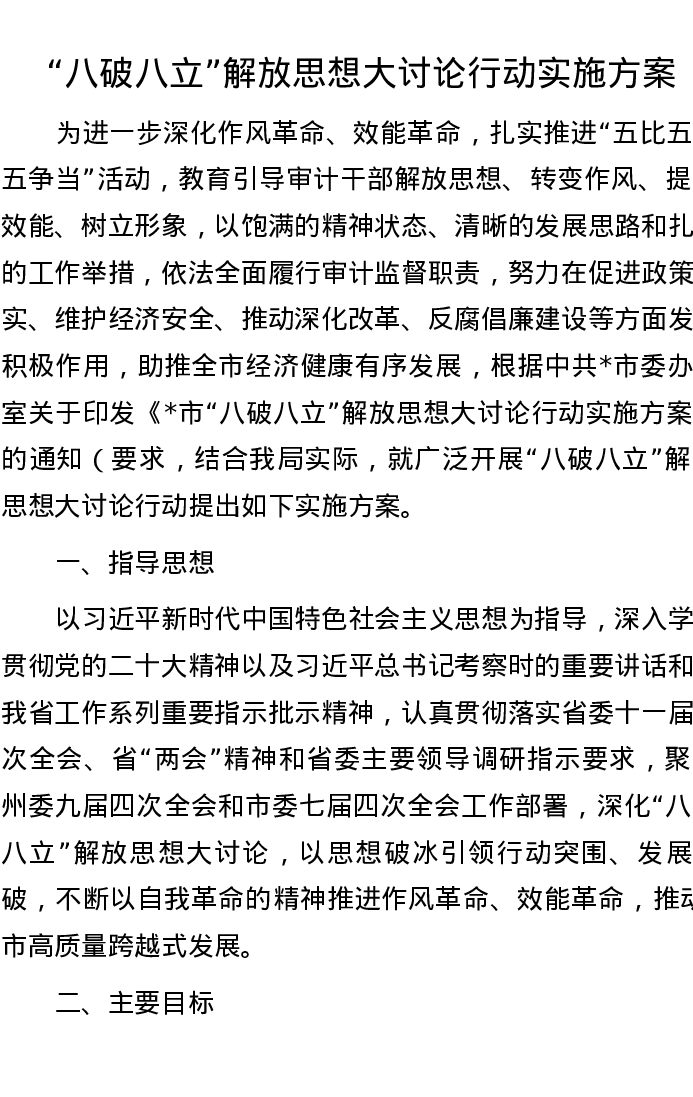 “八破八立”解放思想大讨论行动实施方案