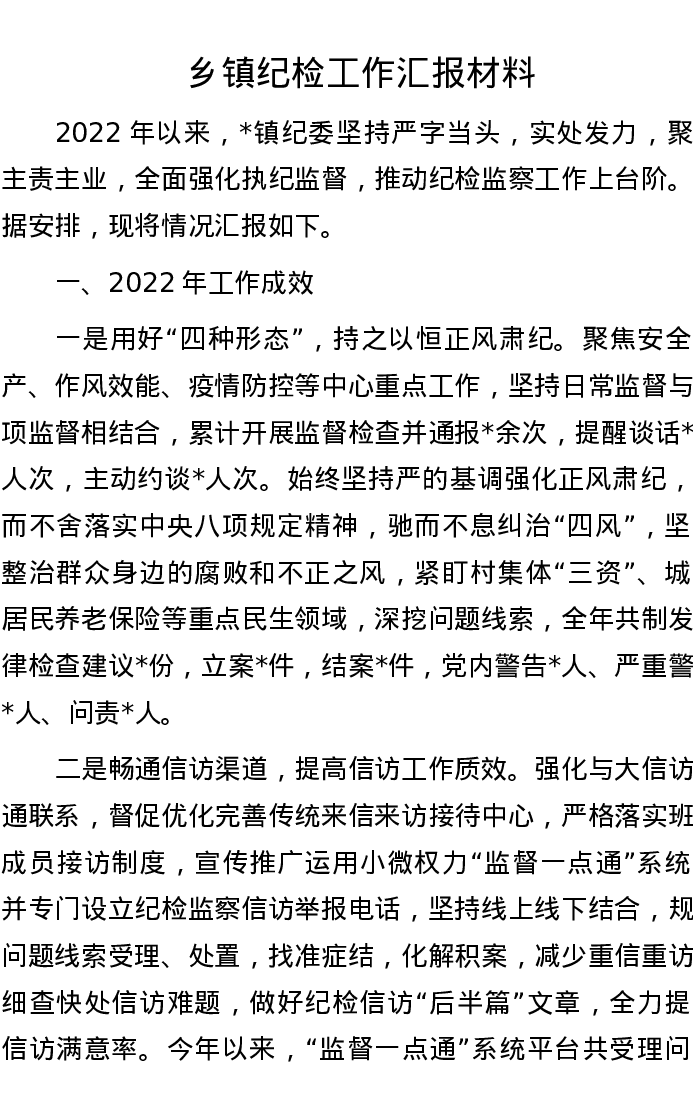 乡镇纪检工作汇报材料