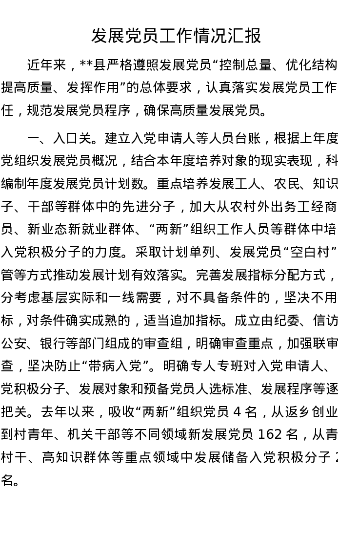 发展党员工作情况汇报