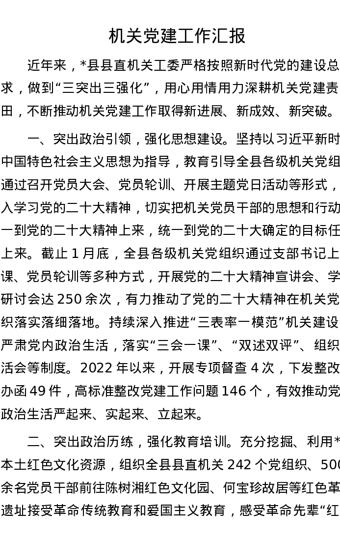机关党建工作汇报