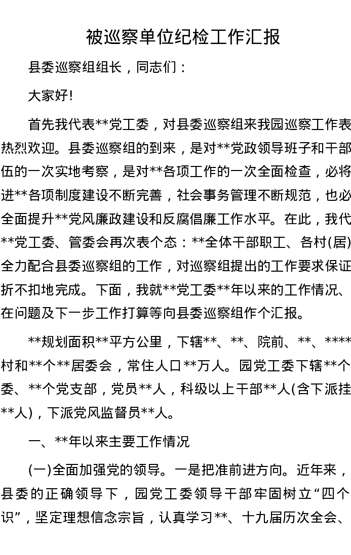 被巡察单位纪检工作汇报