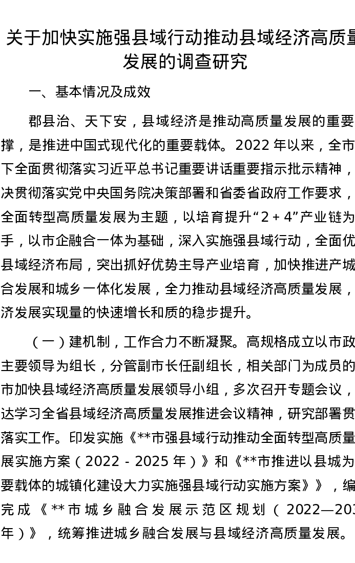关于加快实施强县域行动推动县域经济高质量发展的调查研究