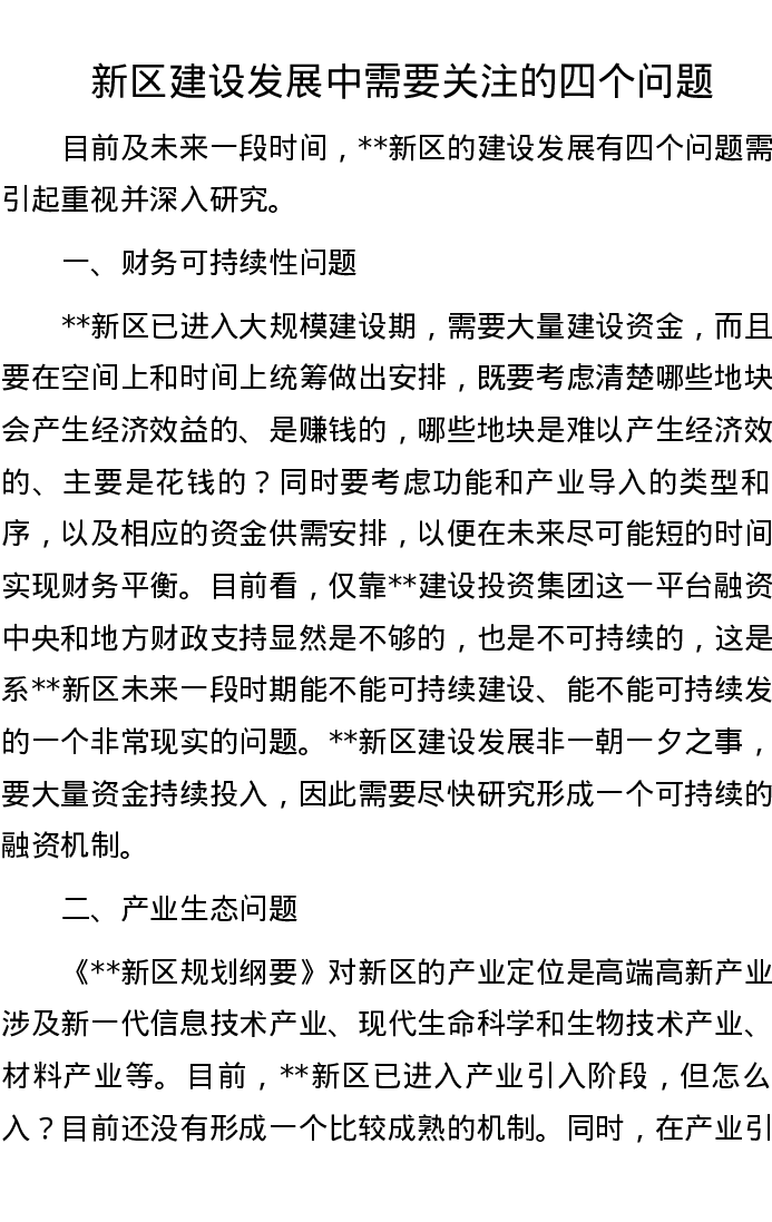 新区建设发展中需要关注的四个问题