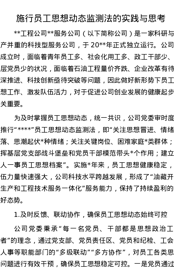 施行员工思想动态监测法的实践与思考