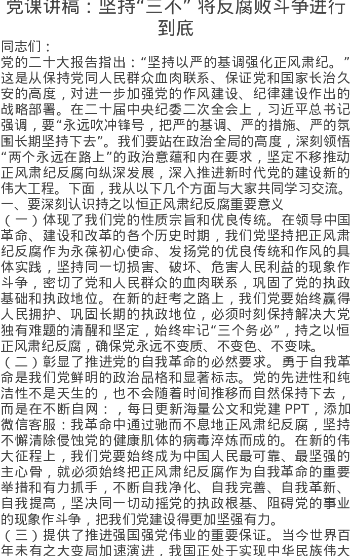 党课讲稿:坚持“三不” 将反腐败斗争进行到底