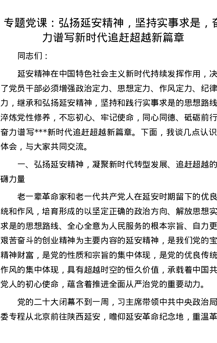 专题党课:弘扬延安精神,坚持实事求是,奋力谱写新时代追赶超越新篇章
