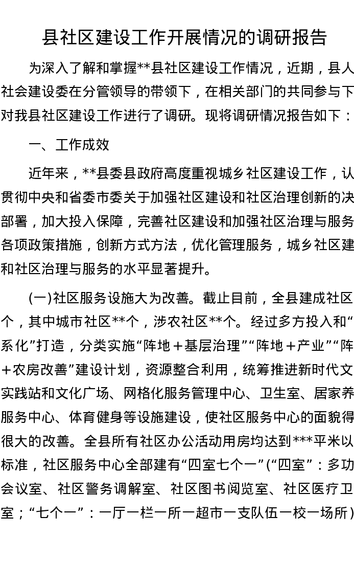县社区建设工作开展情况的调研报告
