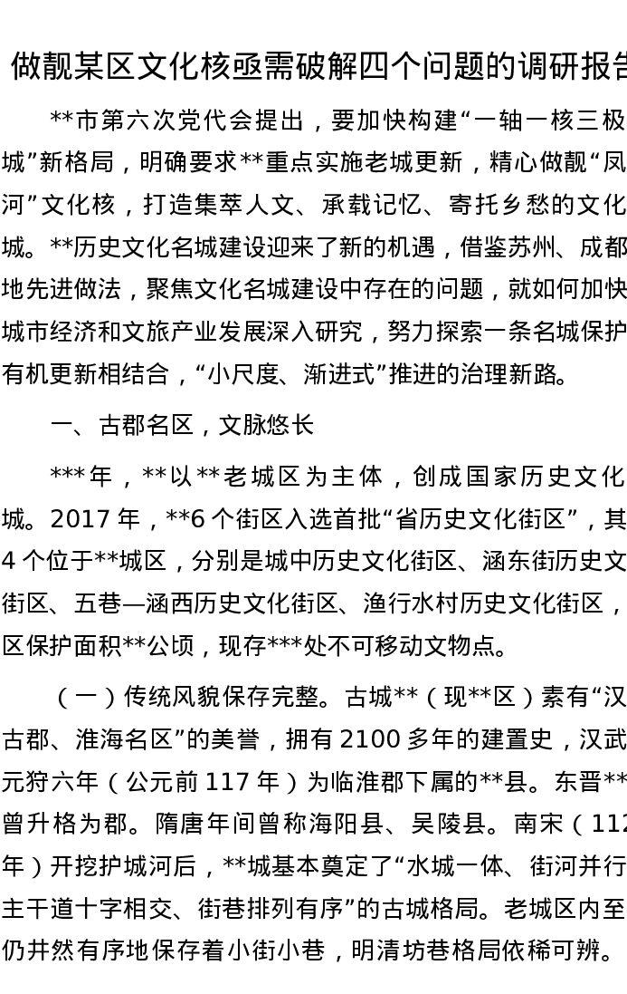 做靓某区文化核亟需破解四个问题的调研报告