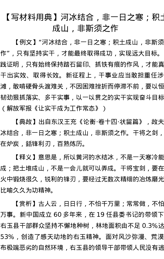 【写材料用典】河冰结合,非一日之寒;积土成山,非斯须之作