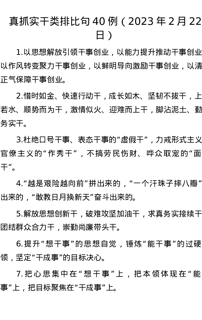 真抓实干类排比句40例(2023年2月22日)