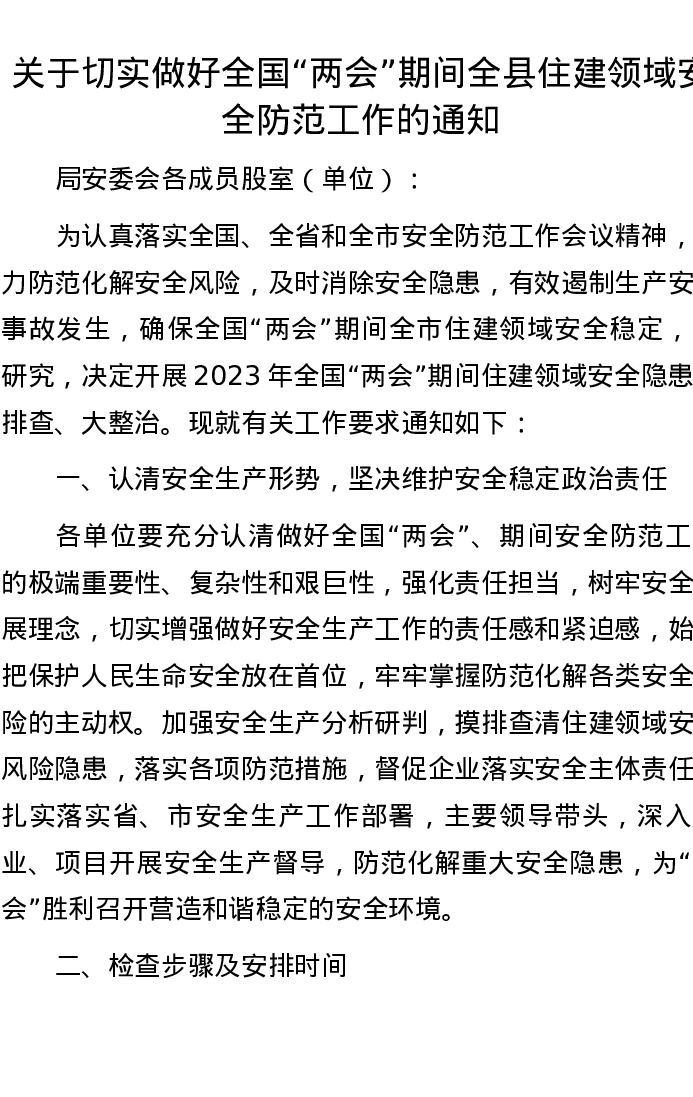 关于切实做好全国“两会”期间全县住建领域安全防范工作的通知