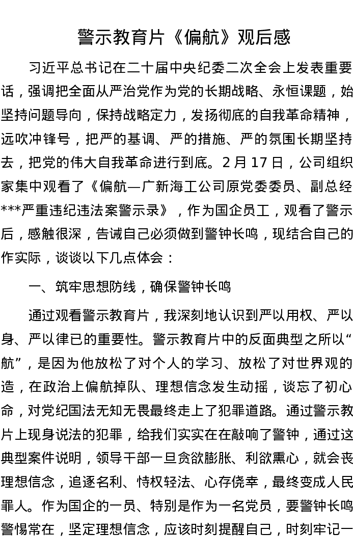 警示教育片《偏航》观后感
