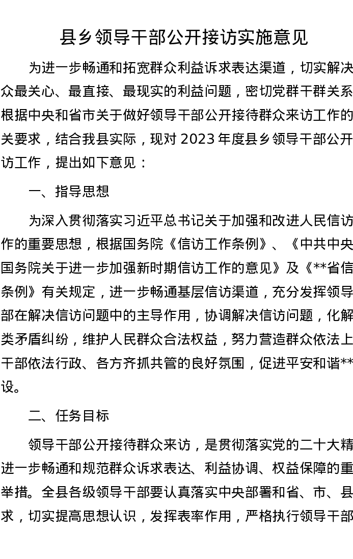 县乡领导干部公开接访实施意见