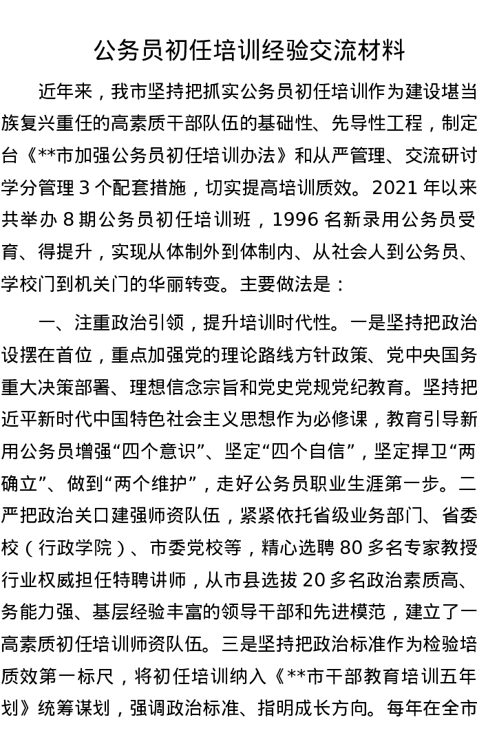 公务员初任培训经验交流材料