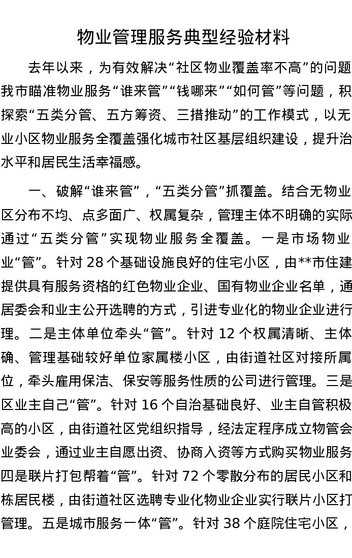 物业管理服务典型经验材料