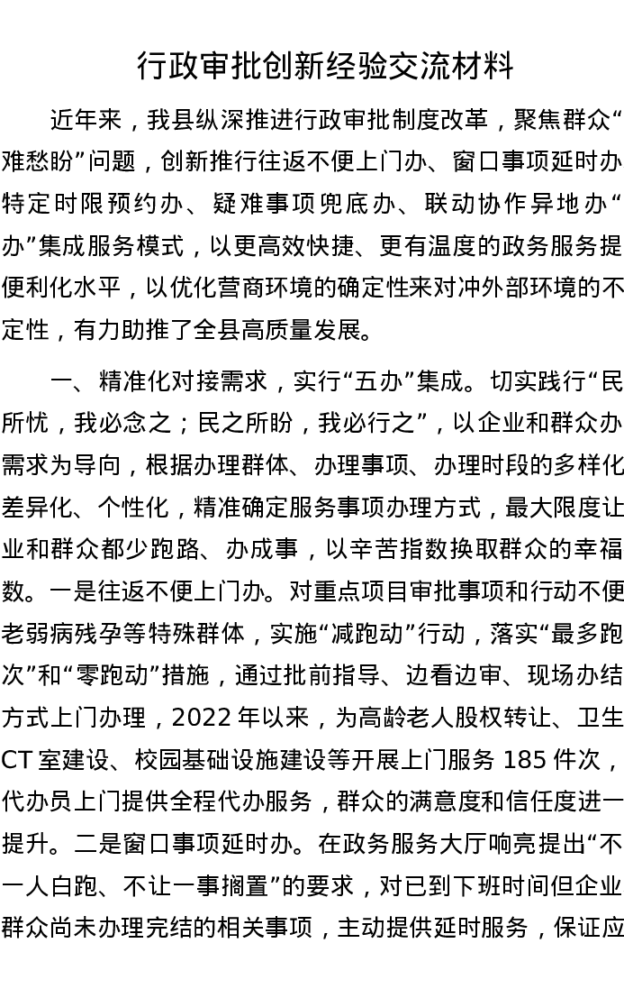 行政审批创新经验交流材料