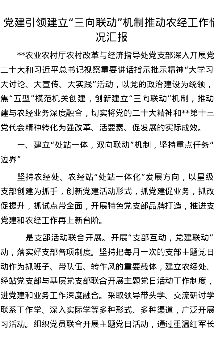 党建引领建立“三向联动”机制推动农经工作情况汇报