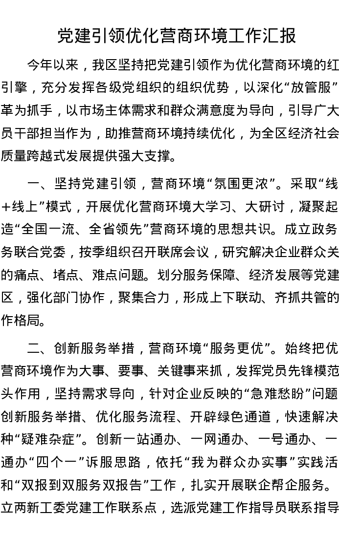 党建引领优化营商环境工作汇报