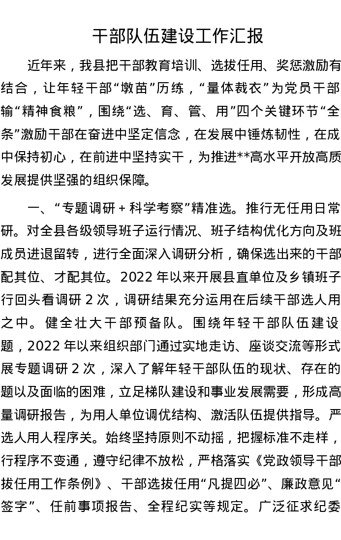 干部队伍建设工作汇报