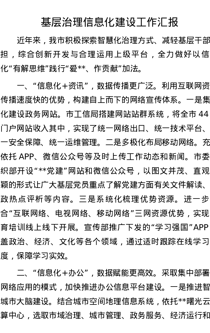基层治理信息化建设工作汇报