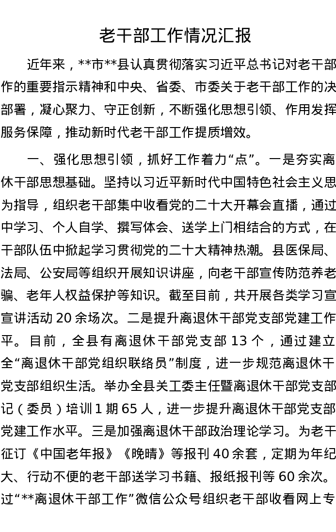 老干部工作情况汇报