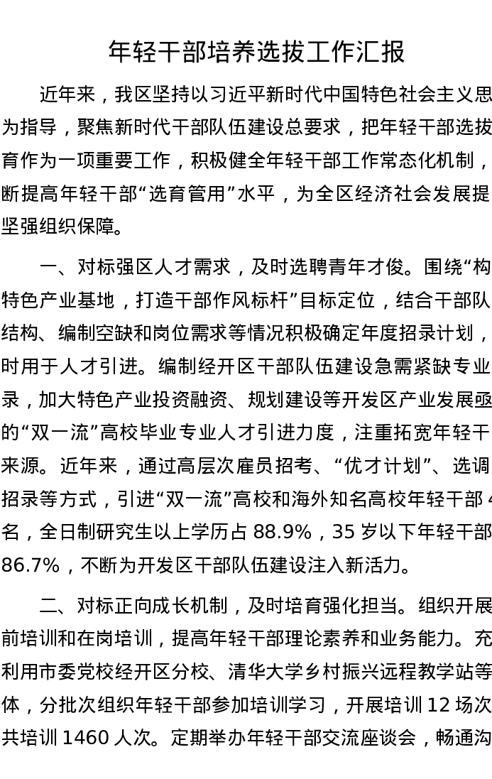 年轻干部培养选拔工作汇报