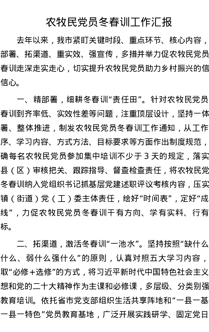 农牧民党员冬春训工作汇报
