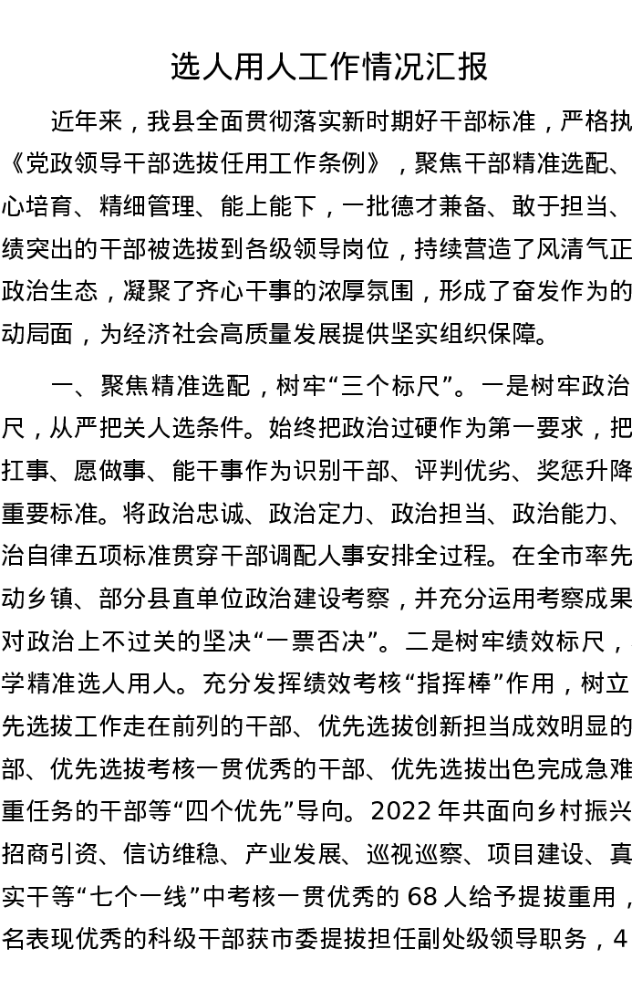 选人用人工作情况汇报