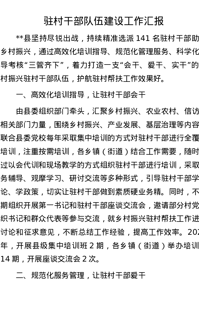 驻村干部队伍建设工作汇报