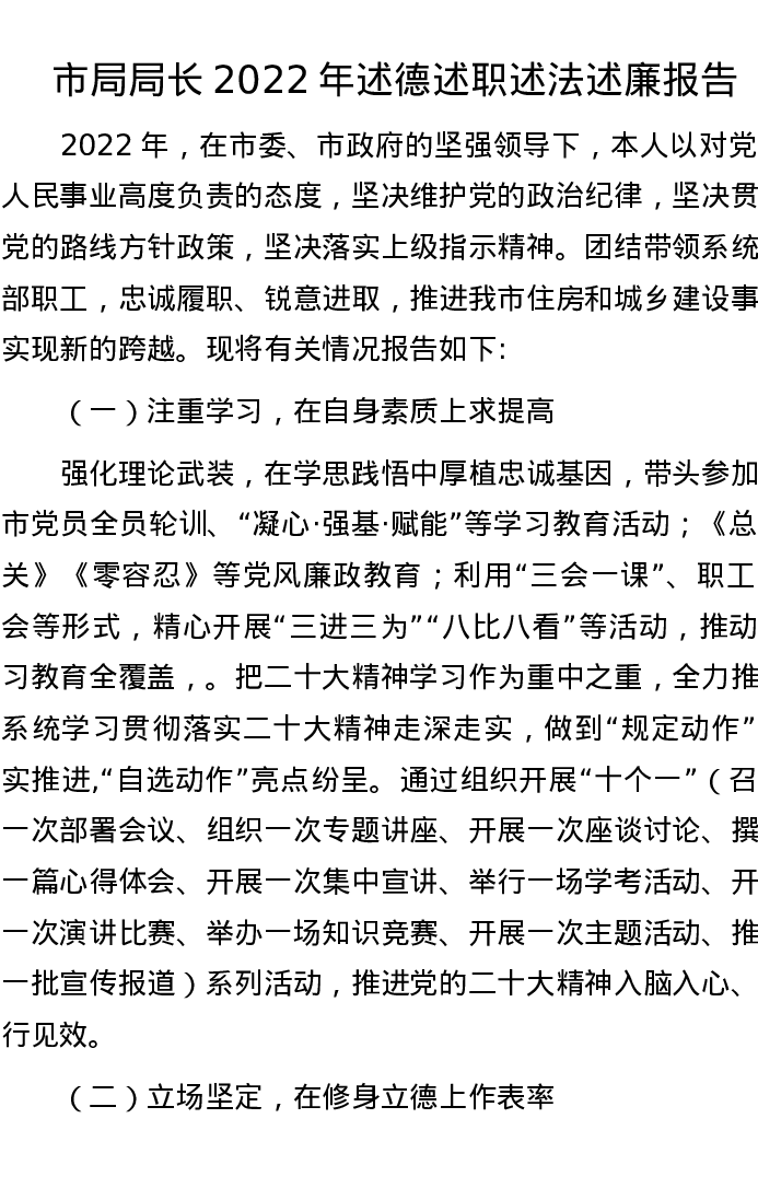 市局局长2022年述德述职述法述廉报告