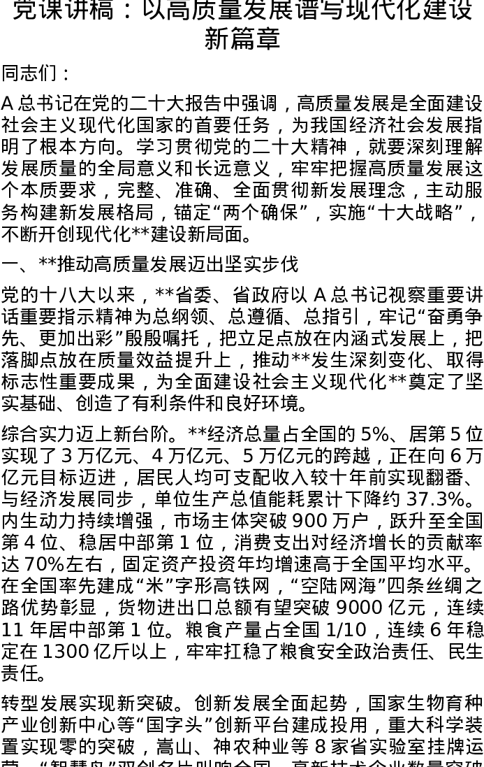 党课讲稿以高质量发展谱写现代化建设新篇章