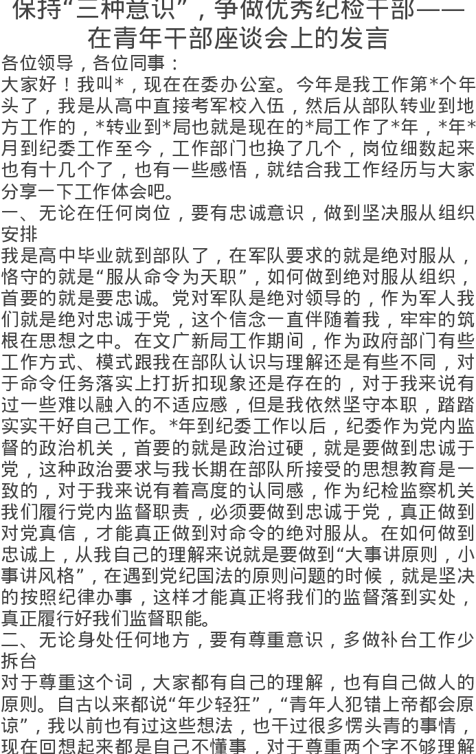保持“三种意识”,争做优秀纪检干部——在青年干部座谈会上的发言