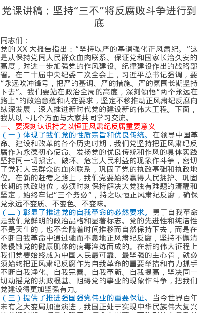 党课讲稿:坚持“三不”将反腐败斗争进行到底
