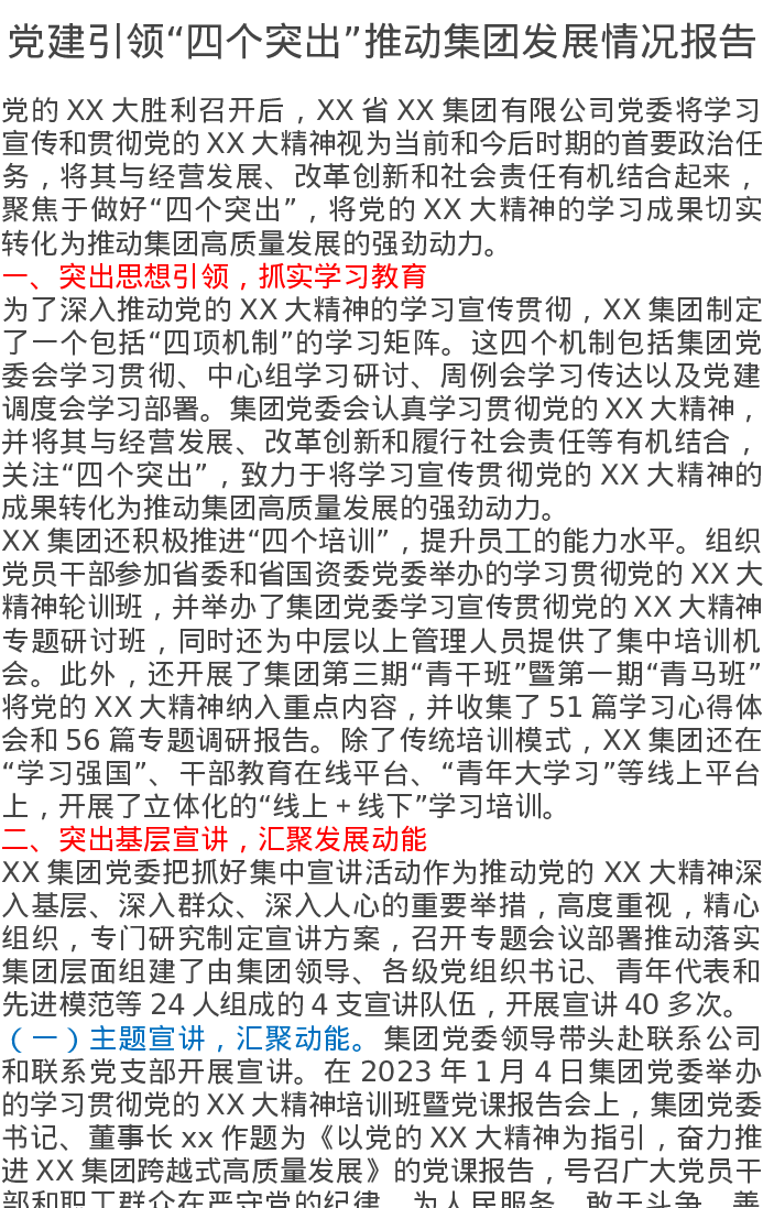 党建引领“四个突出”推动集团发展情况报告