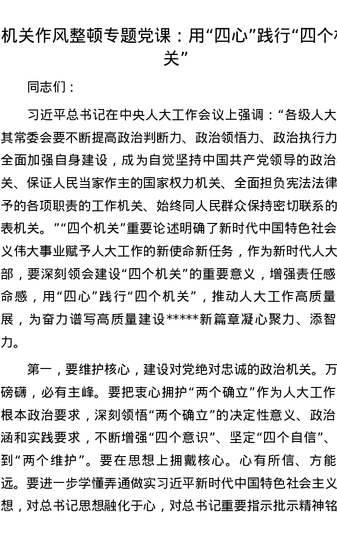 机关作风整顿专题党课:用“四心”践行“四个机关”