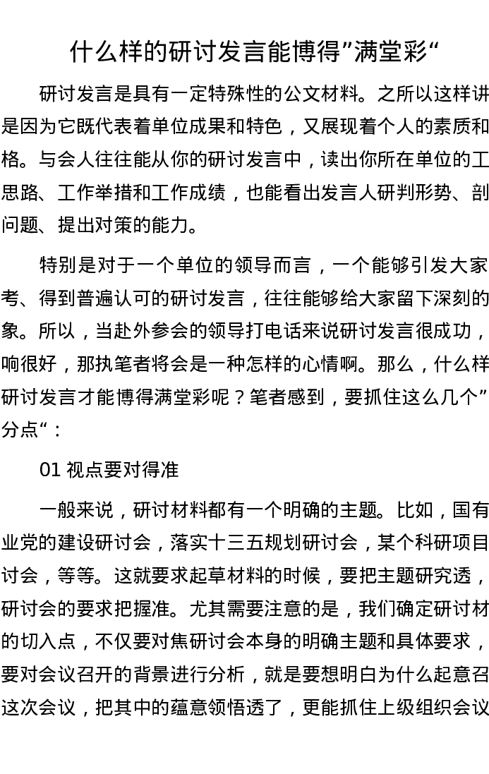 什么样的研讨发言能博得”满堂彩“