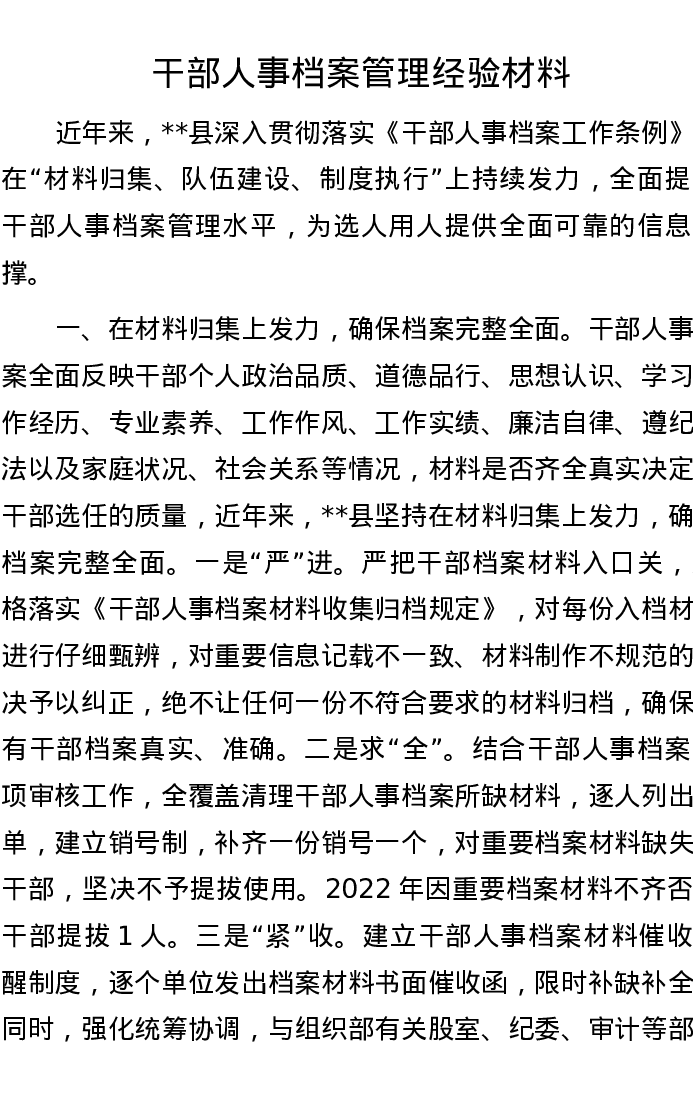 干部人事档案管理经验材料